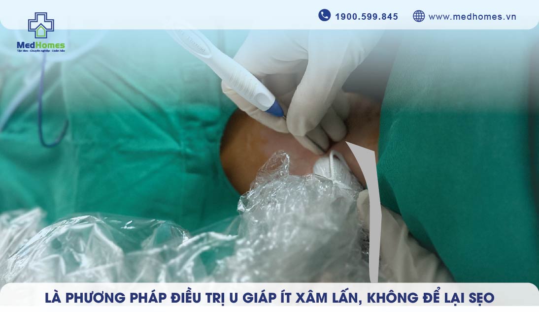 Điều trị hủy u giáp bằng phương pháp đốt sóng cao tần (RFA). Đây là phương pháp điều trị u giáp ít xâm lấn, không nằm viện- người bệnh ra về sau 30ph theo dõi tại phòng khám, bảo tồn tối đa nhu mô giáp lành